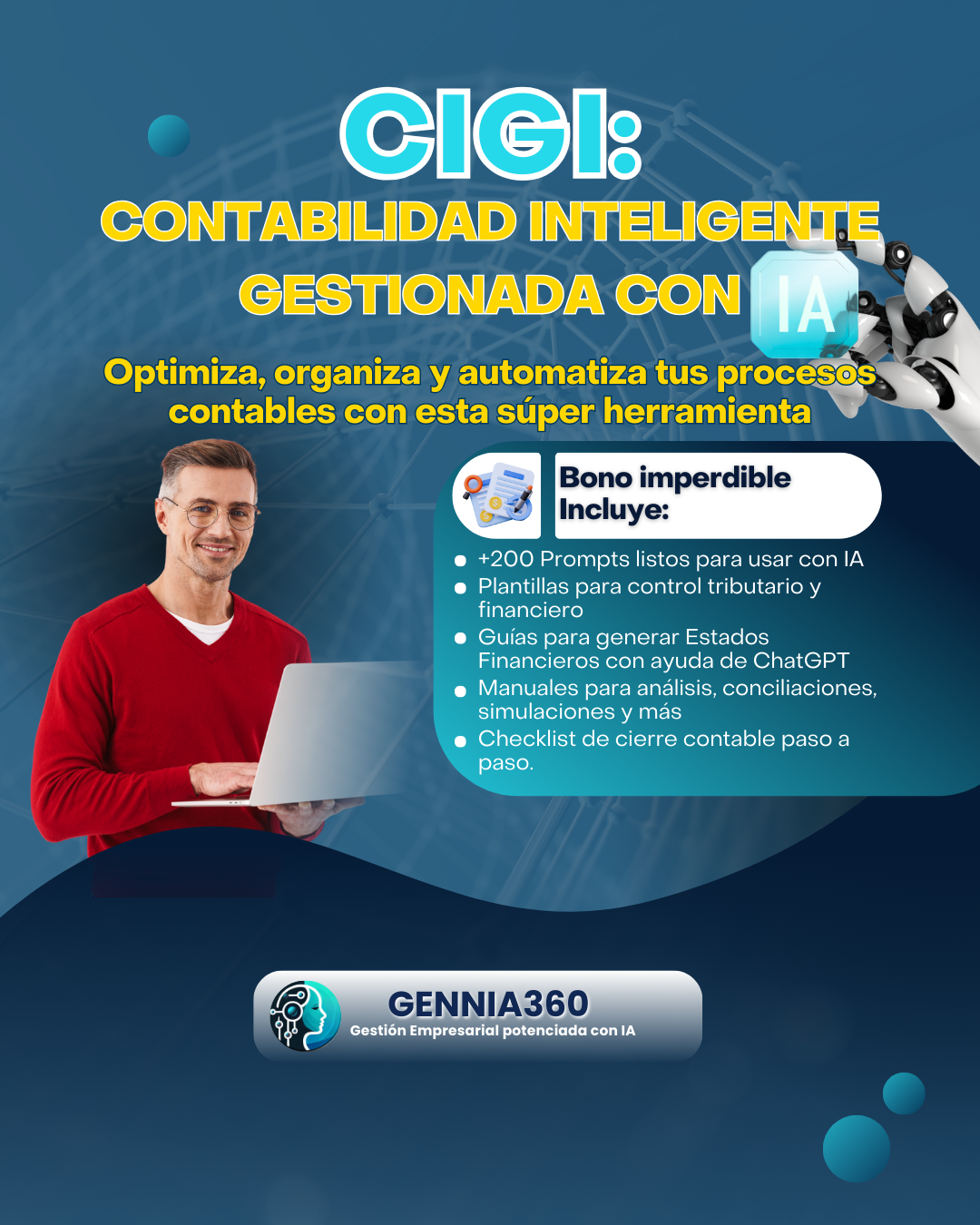 Aprende paso a paso a usar Inteligencia Artificial en la contabilidad sin fórmulas, sin programación. Con asistentes inteligentes, plantillas listas y casos reales.